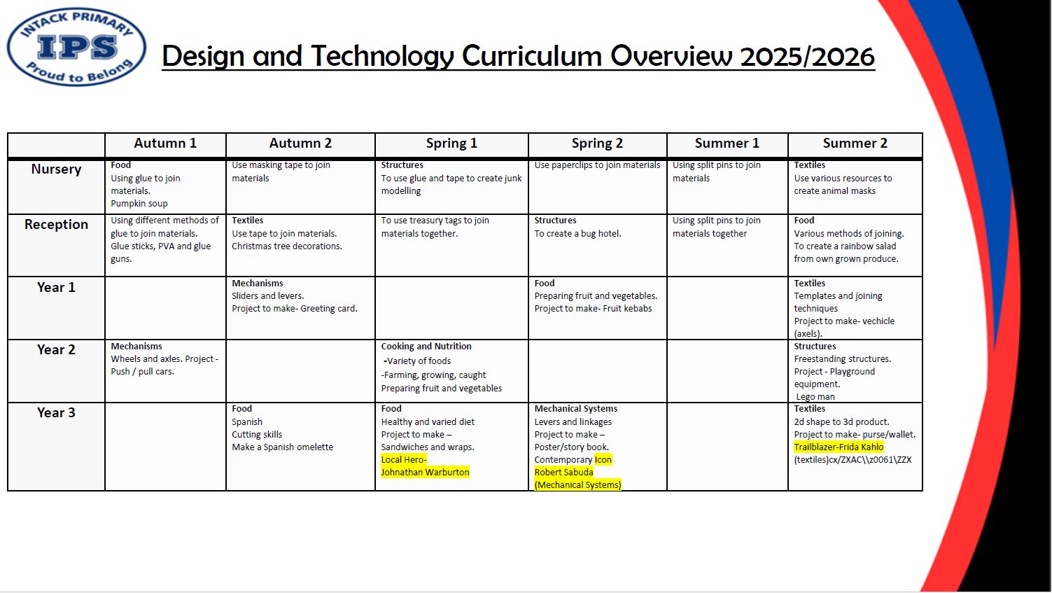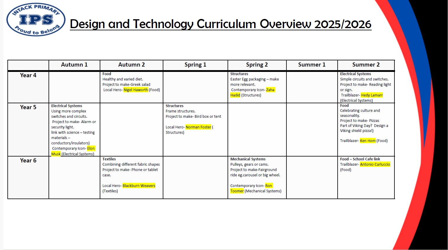DESIGN TECHNOLOGY CURRICULUM OVERVIEW AT INTACK SCHOOL
