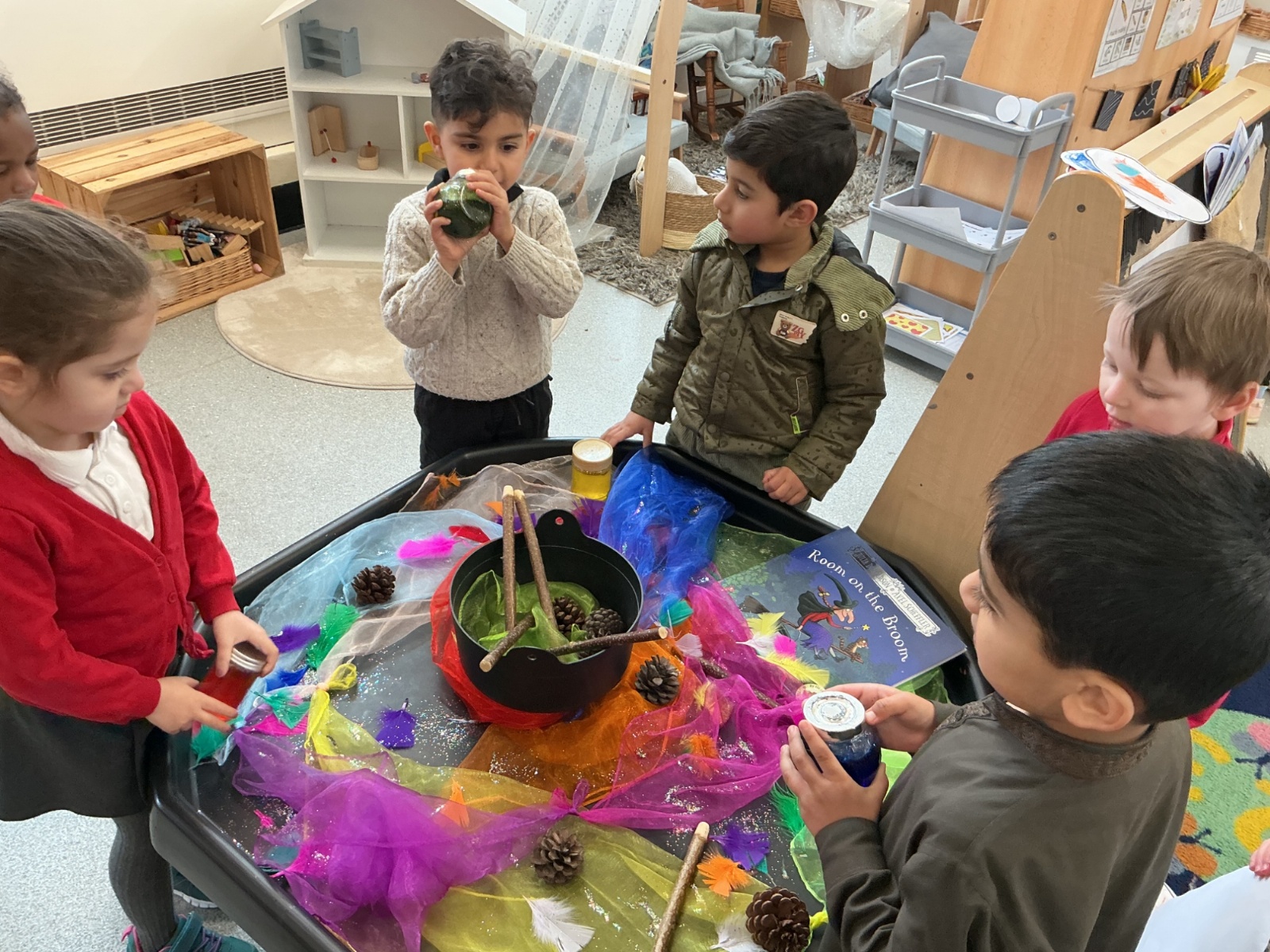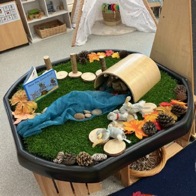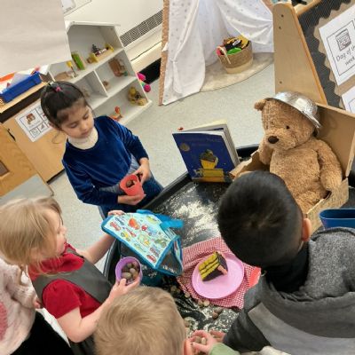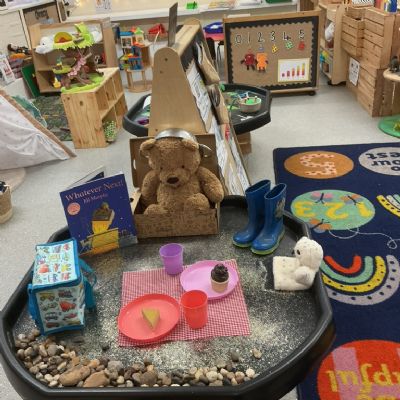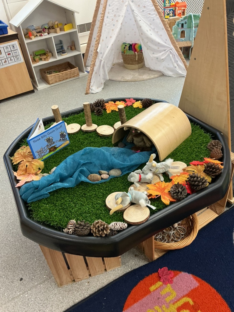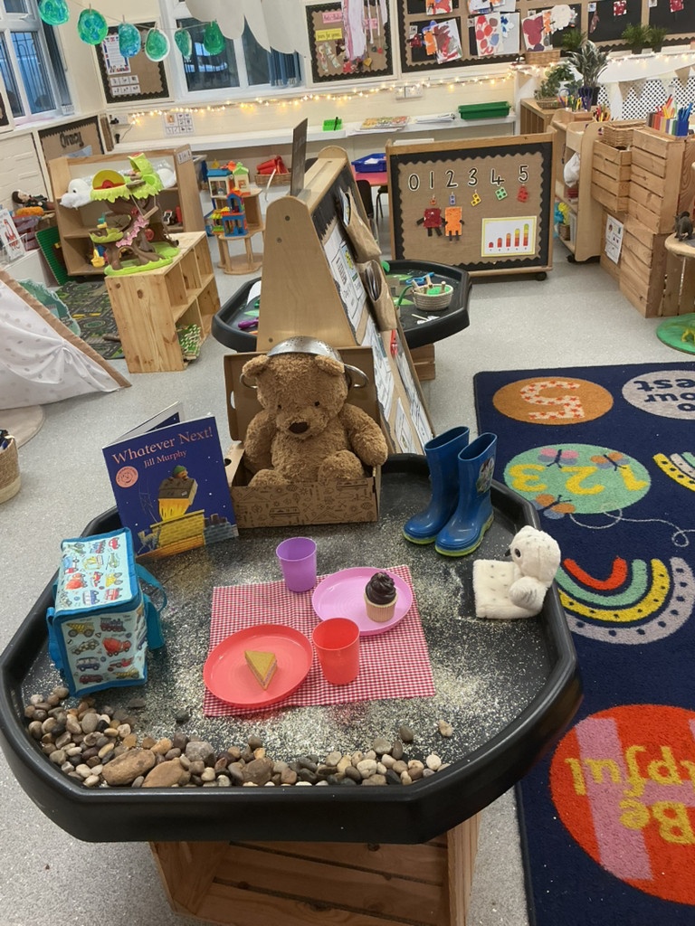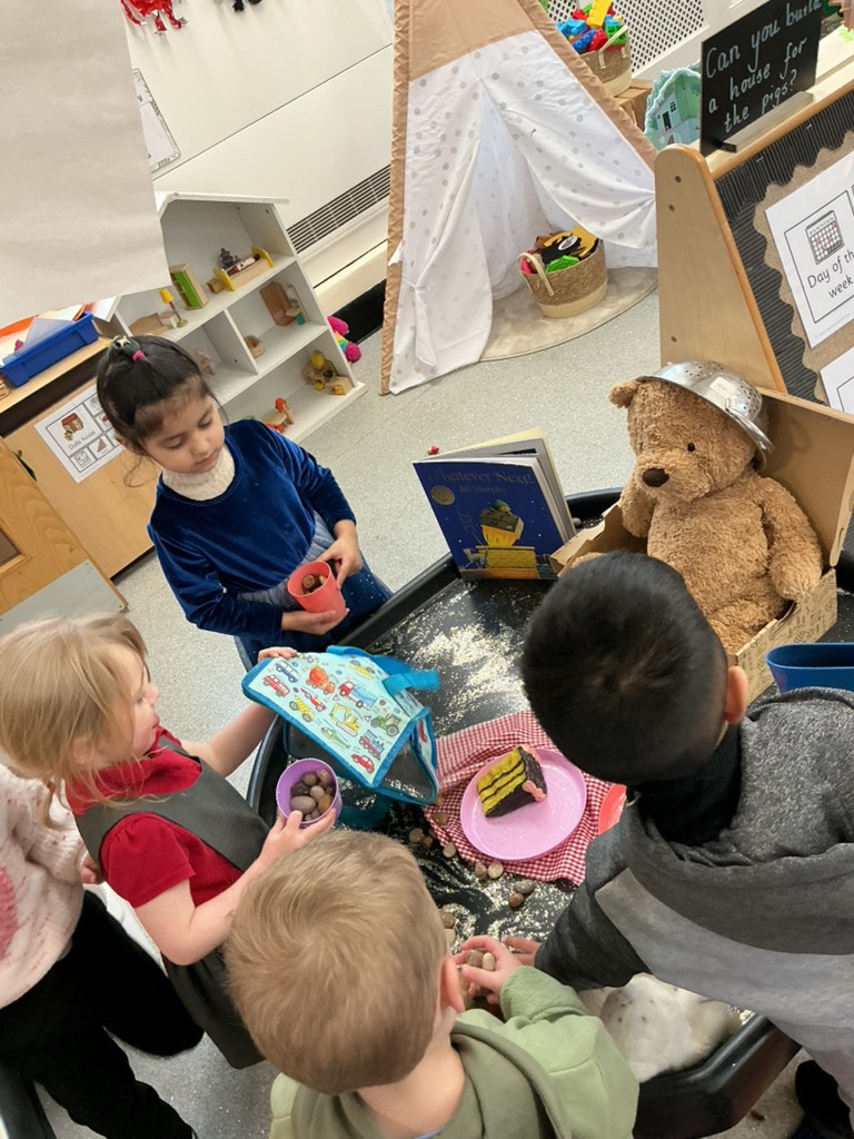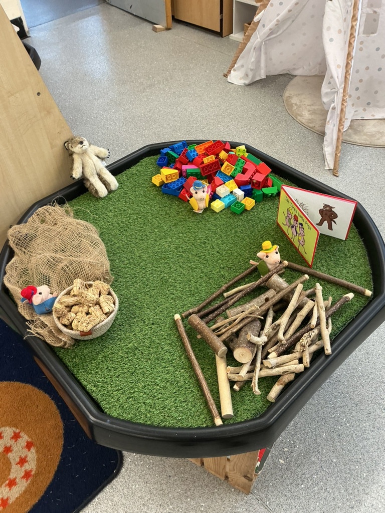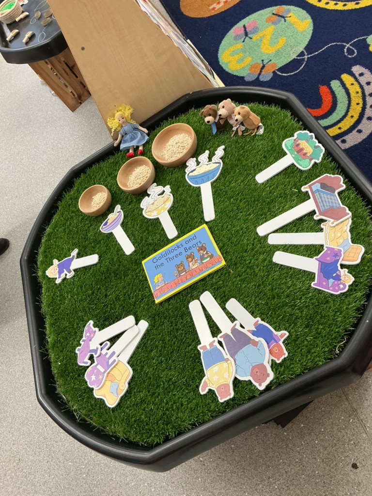 A very magical Week! Each day, the children explored a tuff tray inspired by a different familiar story, including The Three Little Pigs, Goldilocks and the Three Bears, Jack and the Beanstalk, Whatever Next, and The Tiger Who Came to Tea. Tuff trays are a fantastic learning tool as they encourage children to explore stories through play. They help develop imagination, language skills, problem-solving, and collaboration, while allowing children to retell stories, create their own ideas, and engage in sensory experiences.
