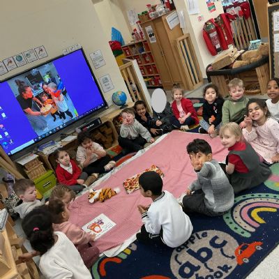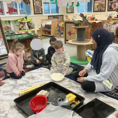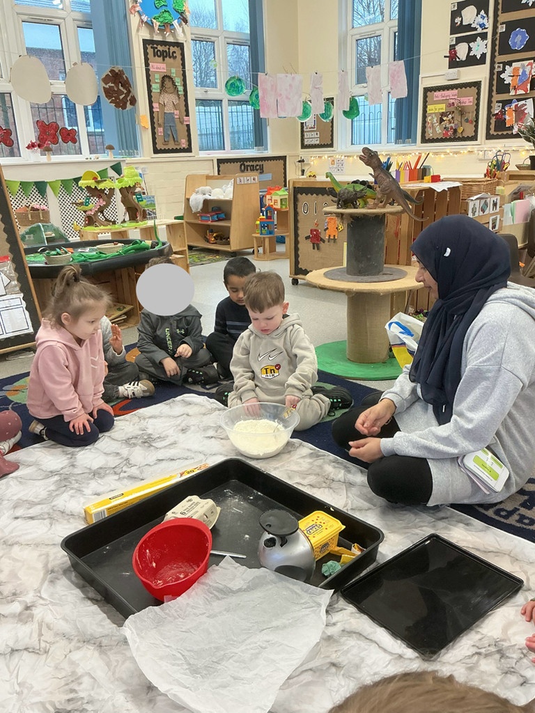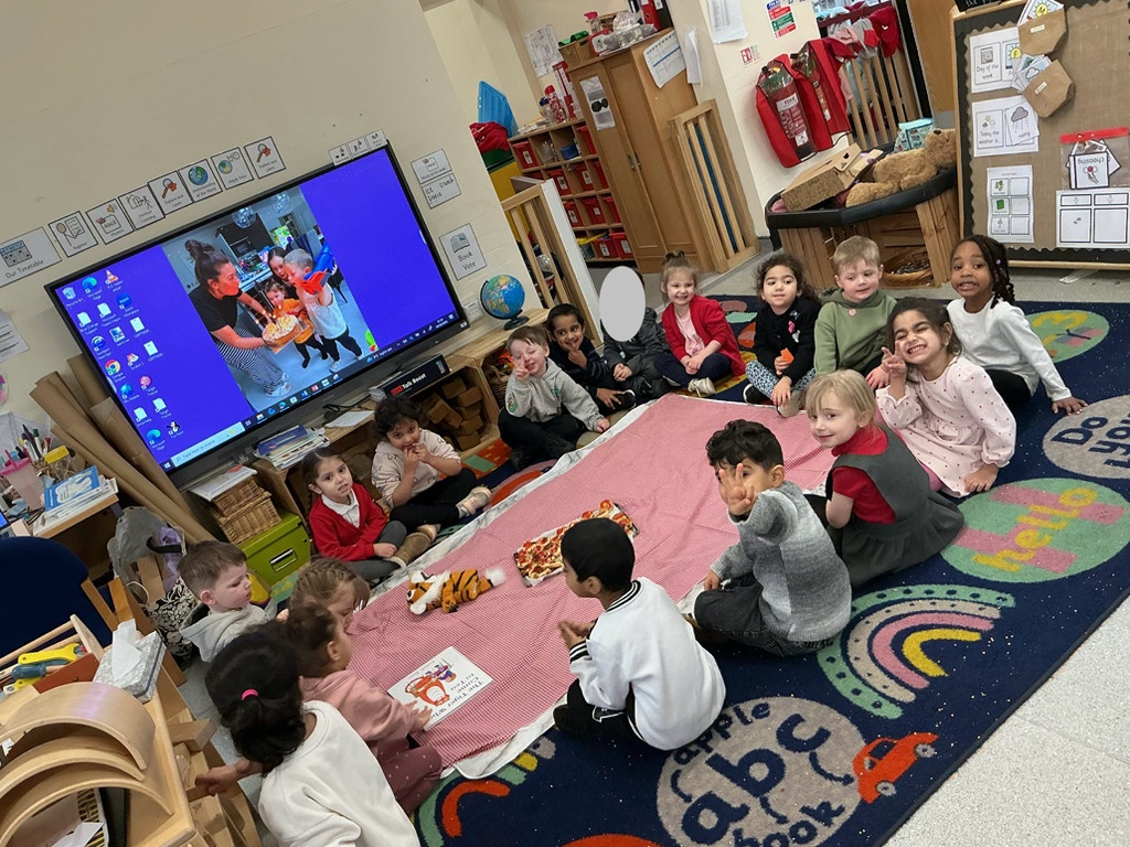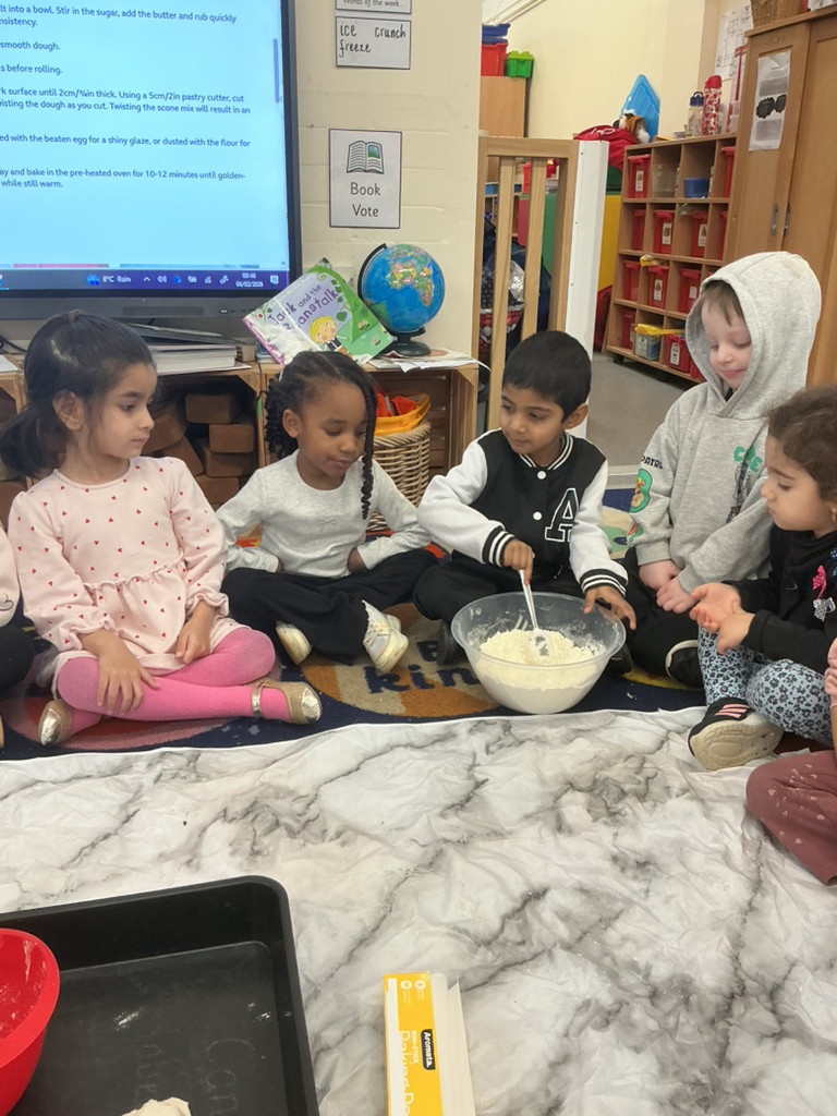 Towards the end of the week, the children worked together to bake scones and we were delighted to invite a very special guest — the Tiger Who Came to Tea! This was a wonderful opportunity to link storytelling with real-life experiences and teamwork.