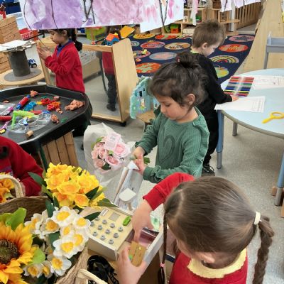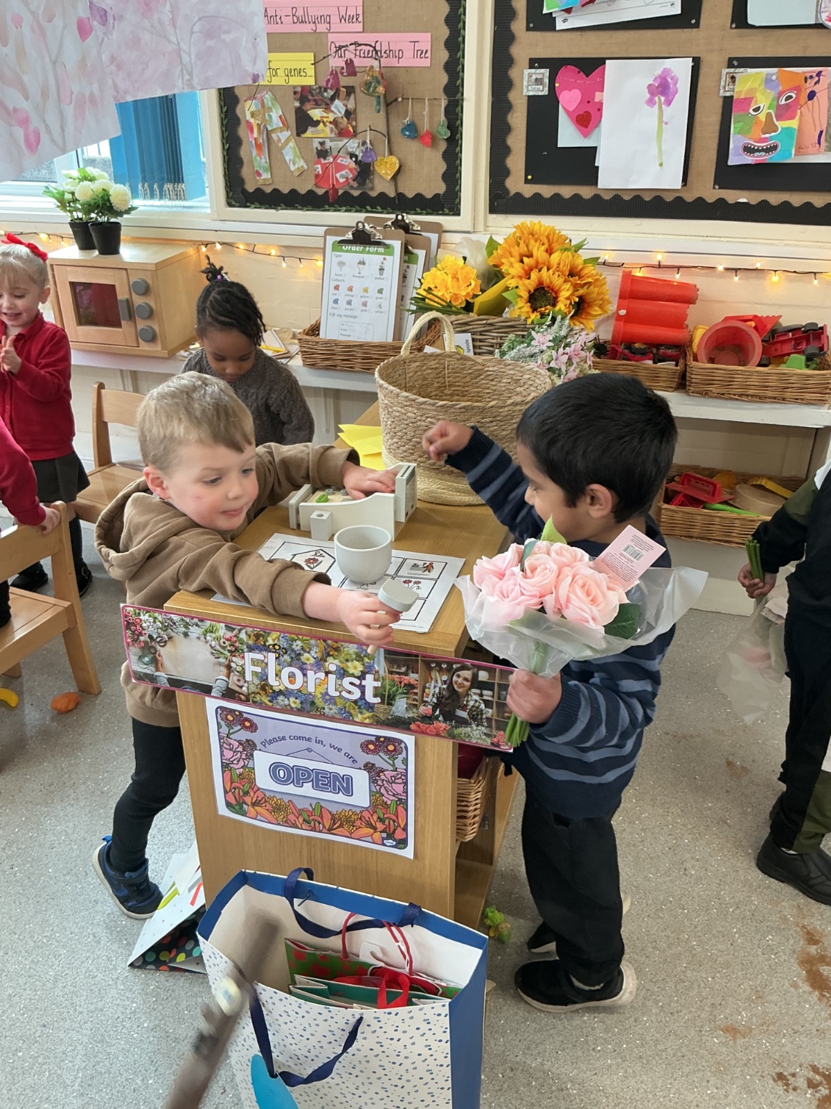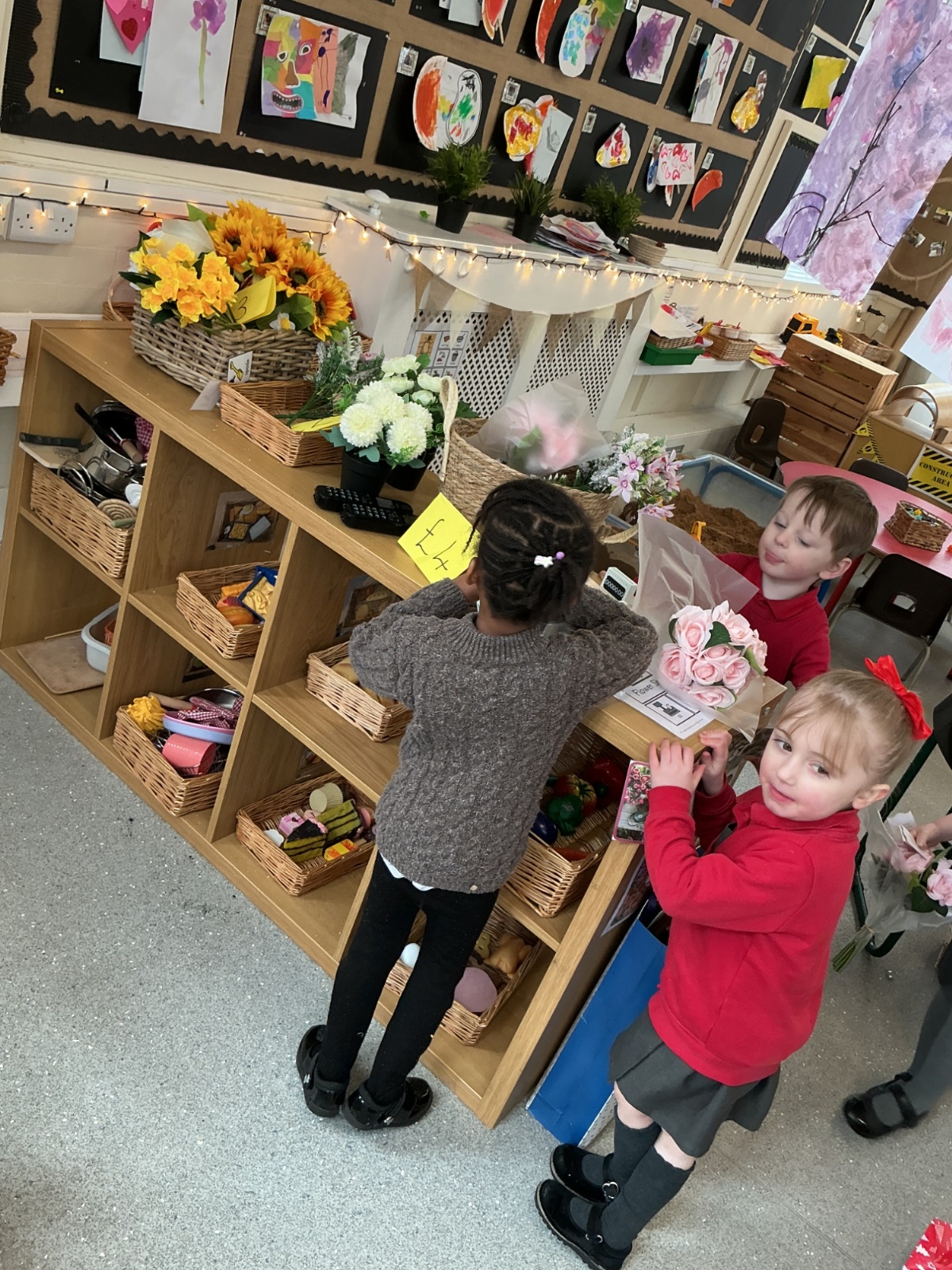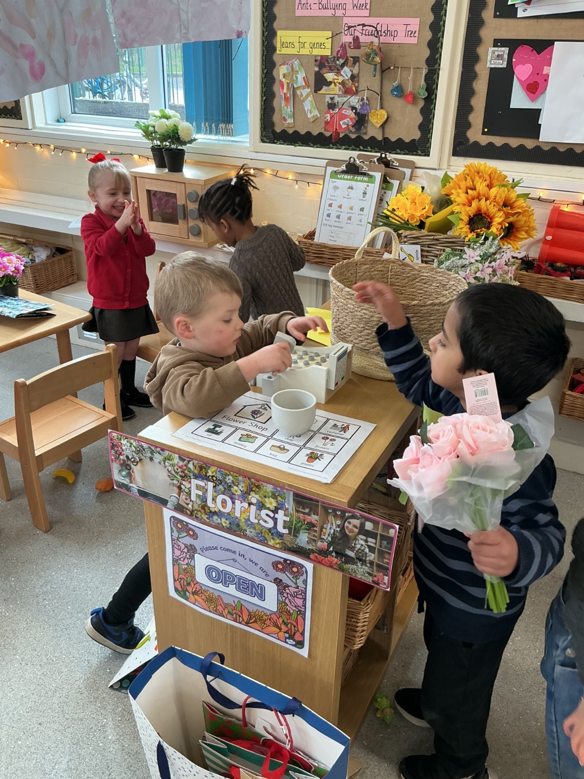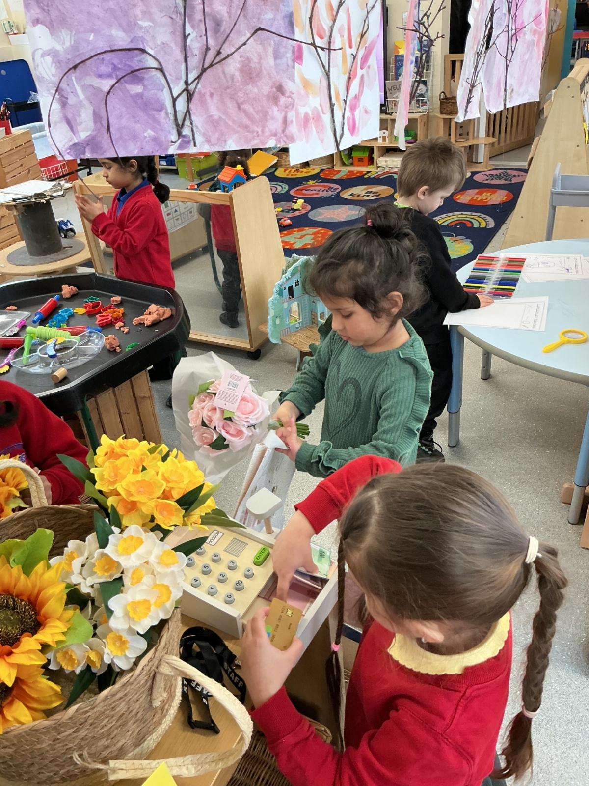 To link with our topic of growing and planting, we added a flower shop to our role play area. The children have loved this new addition and have been very engaged in their play. It has particularly supported oracy, as children take on roles such as a florist and a customer.