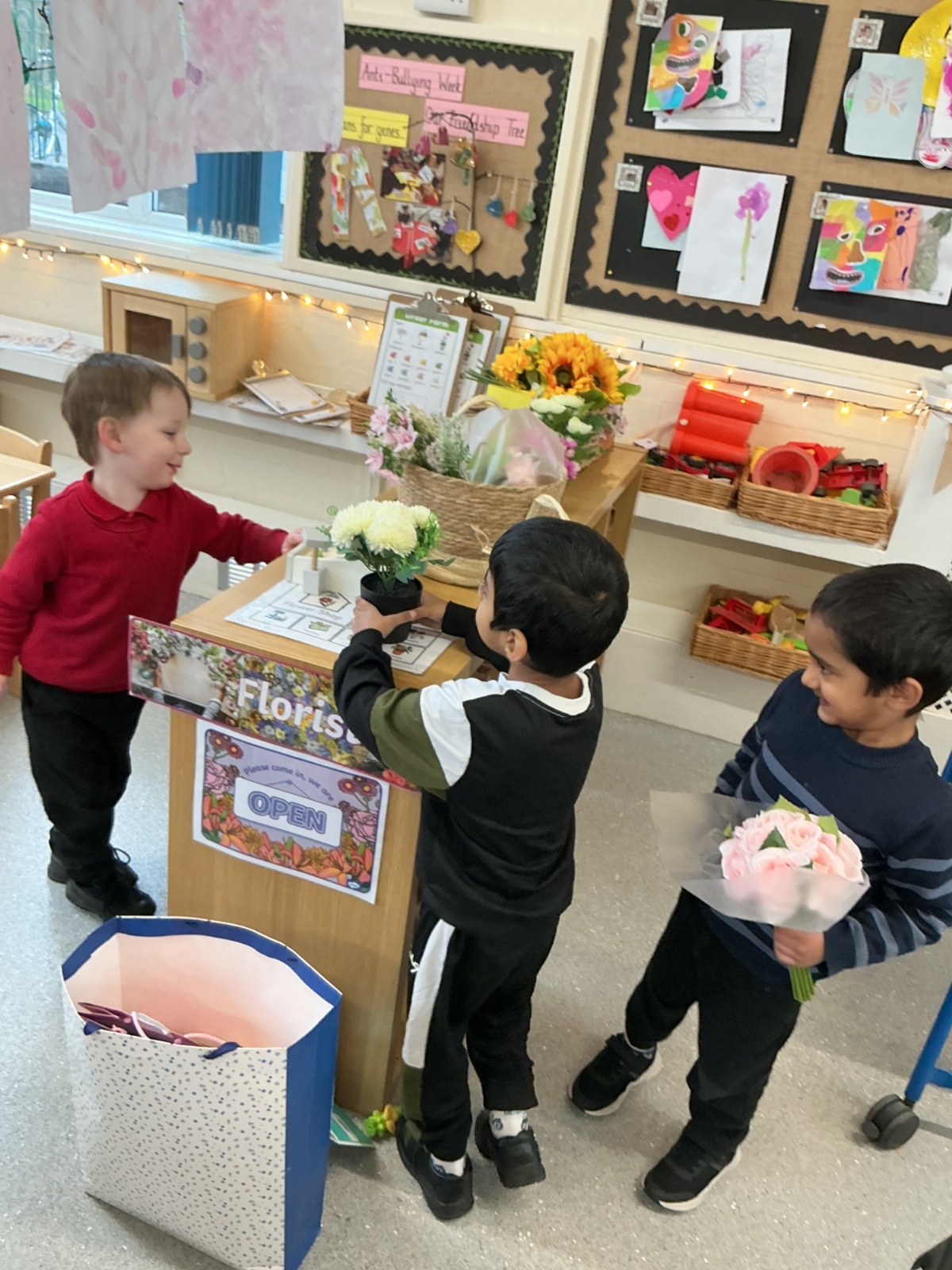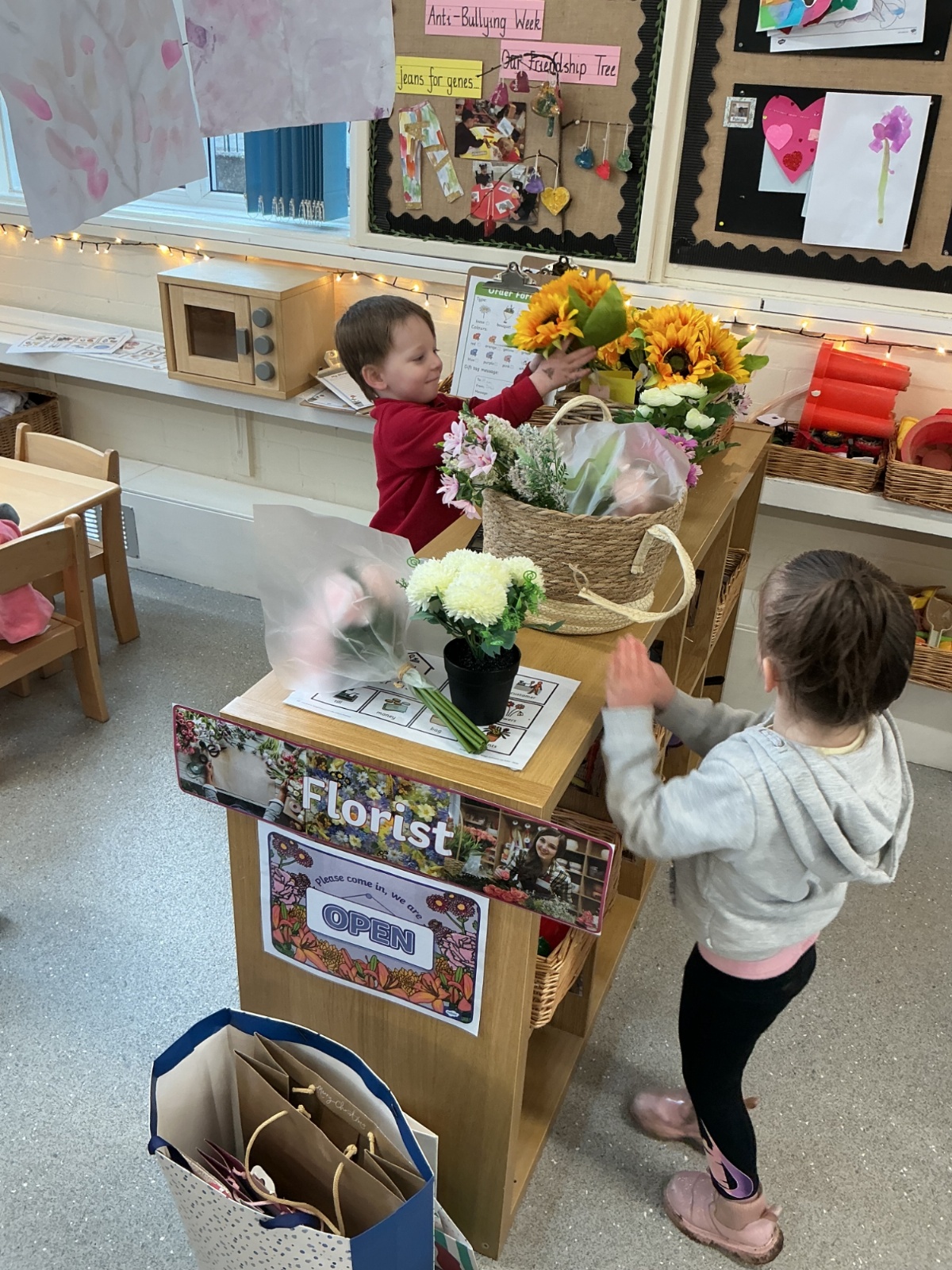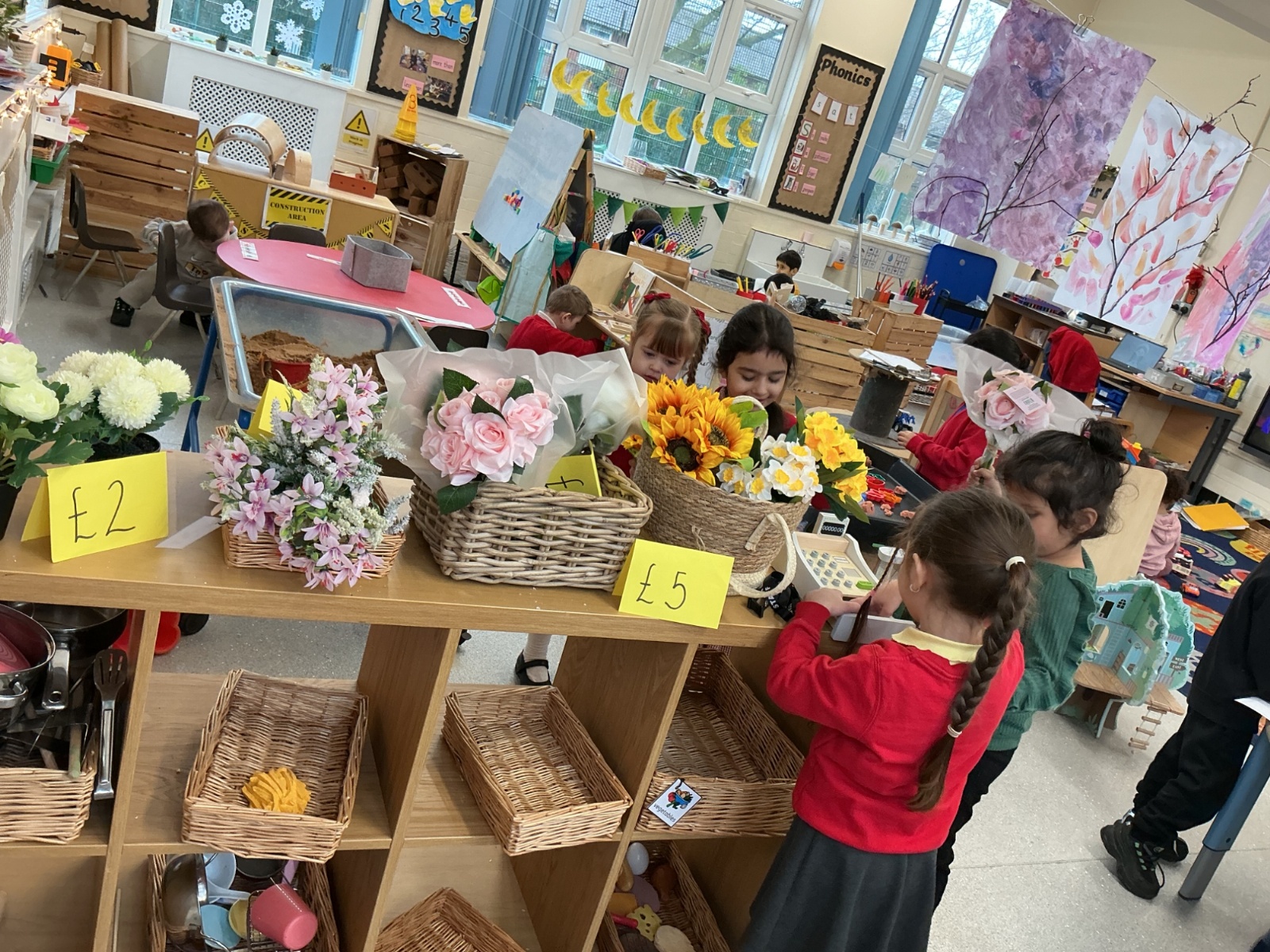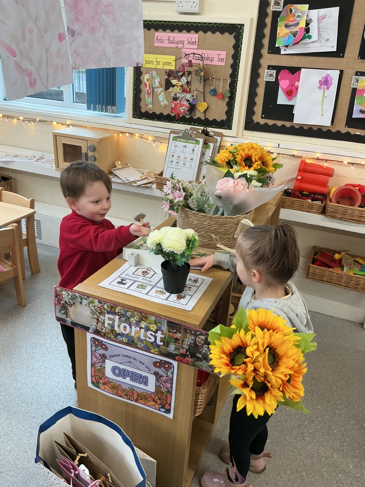 To link with our topic of growing and planting, we added a flower shop to our role play area. The children have loved this new addition and have been very engaged in their play. It has particularly supported oracy, as children take on roles such as a florist and a customer.