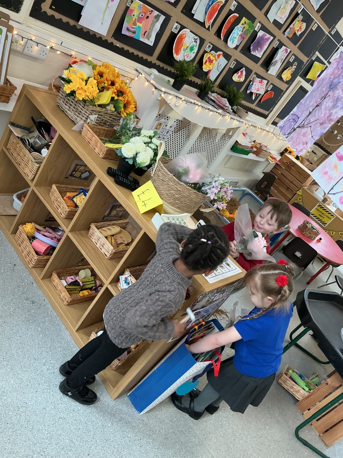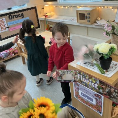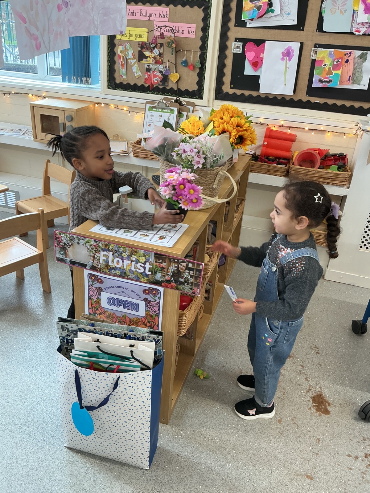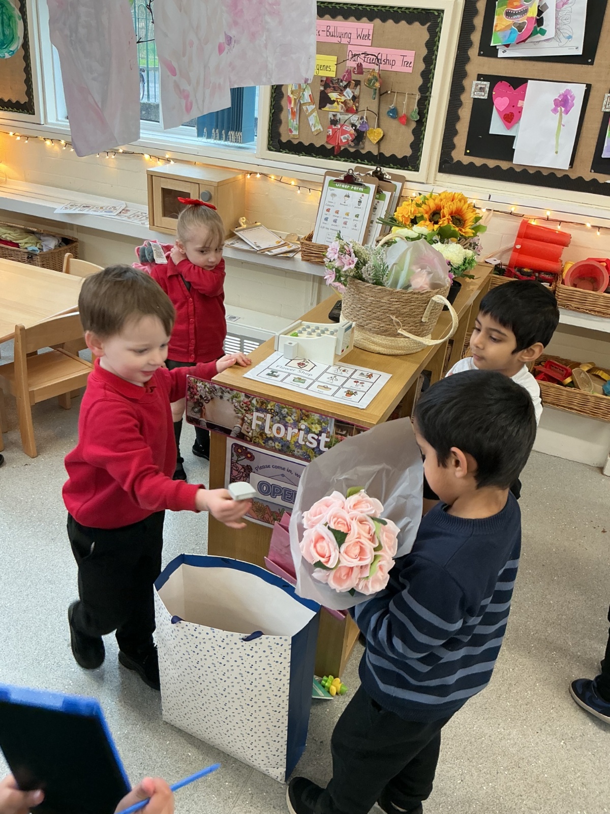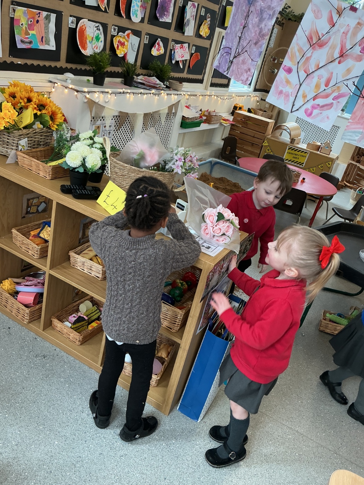 To link with our topic of growing and planting, we added a flower shop to our role play area. The children have loved this new addition and have been very engaged in their play. It has particularly supported oracy, as children take on roles such as a florist and a customer.