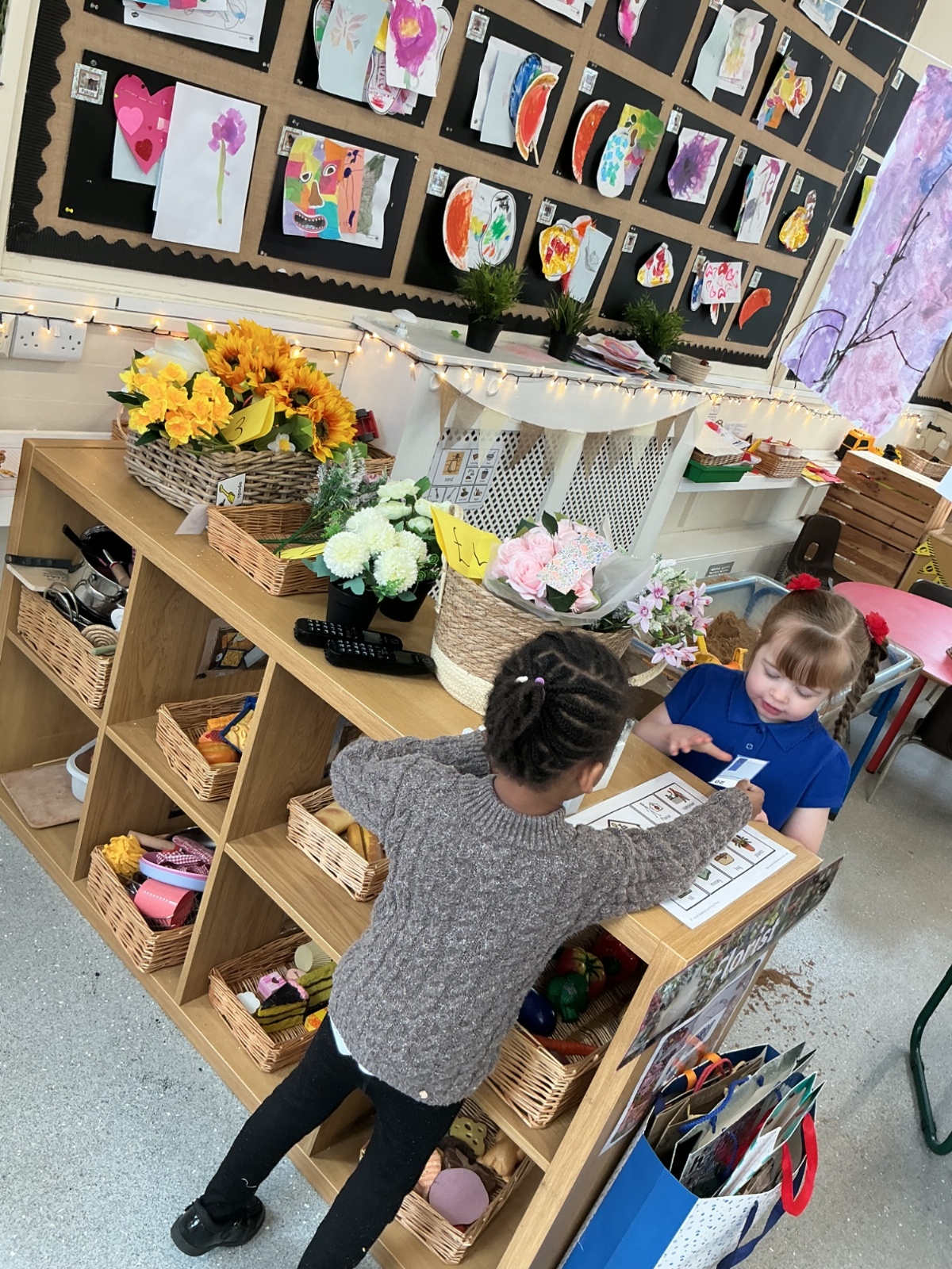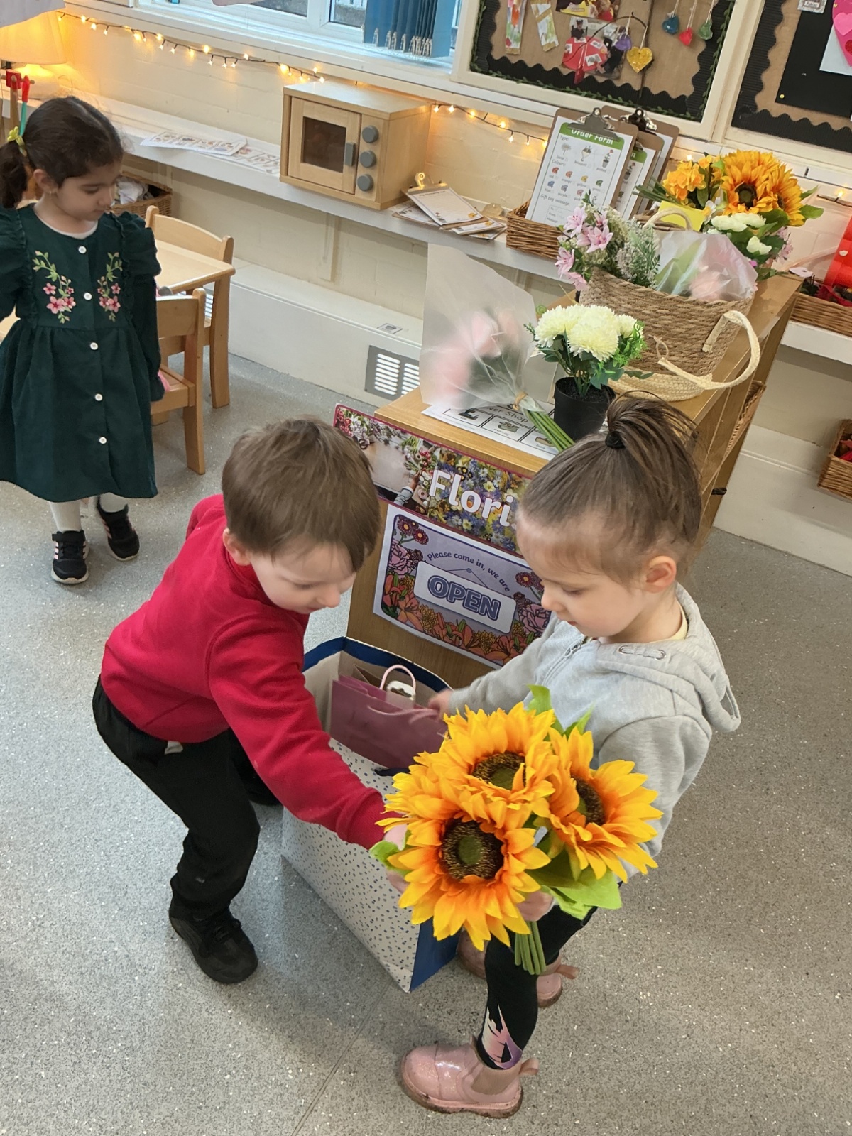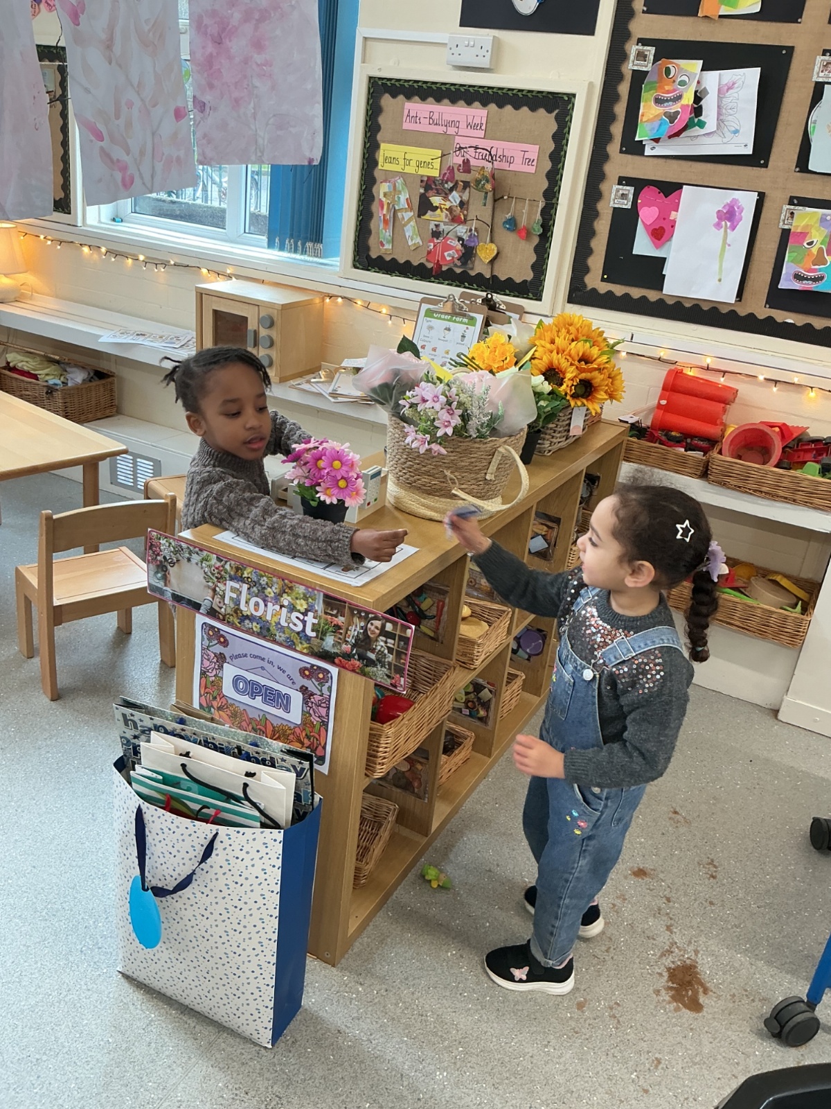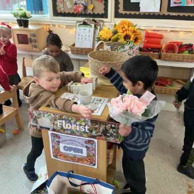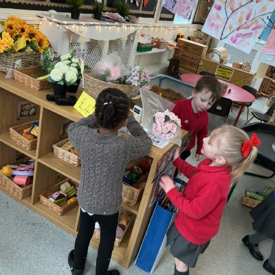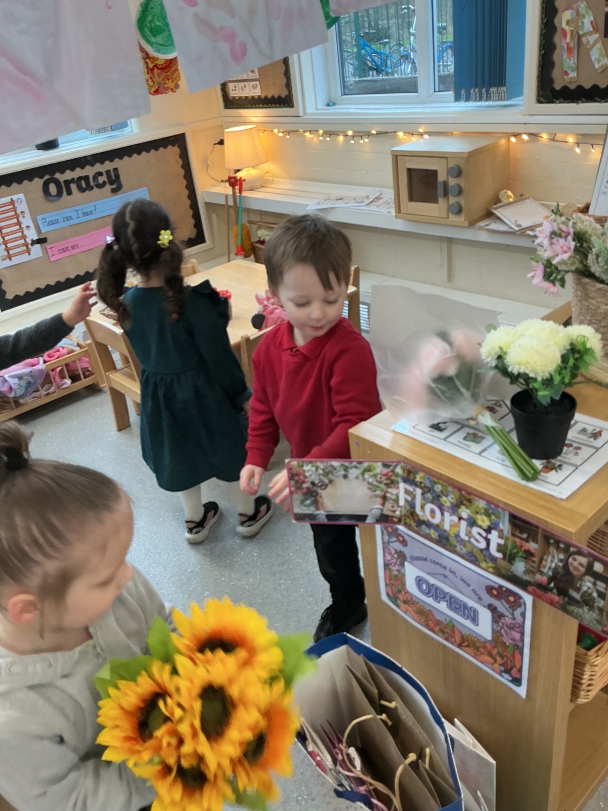 To link with our topic of growing and planting, we added a flower shop to our role play area. The children have loved this new addition and have been very engaged in their play. It has particularly supported oracy, as children take on roles such as a florist and a customer.