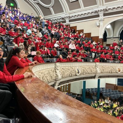 As a reward for composing a piece of music for the English National Opera, we attended Victoria Hall to visit the opera in person and share our musical masterpieces with musicians and a variety of other schools. Some children even had the opportunity to join the musicians on stage.