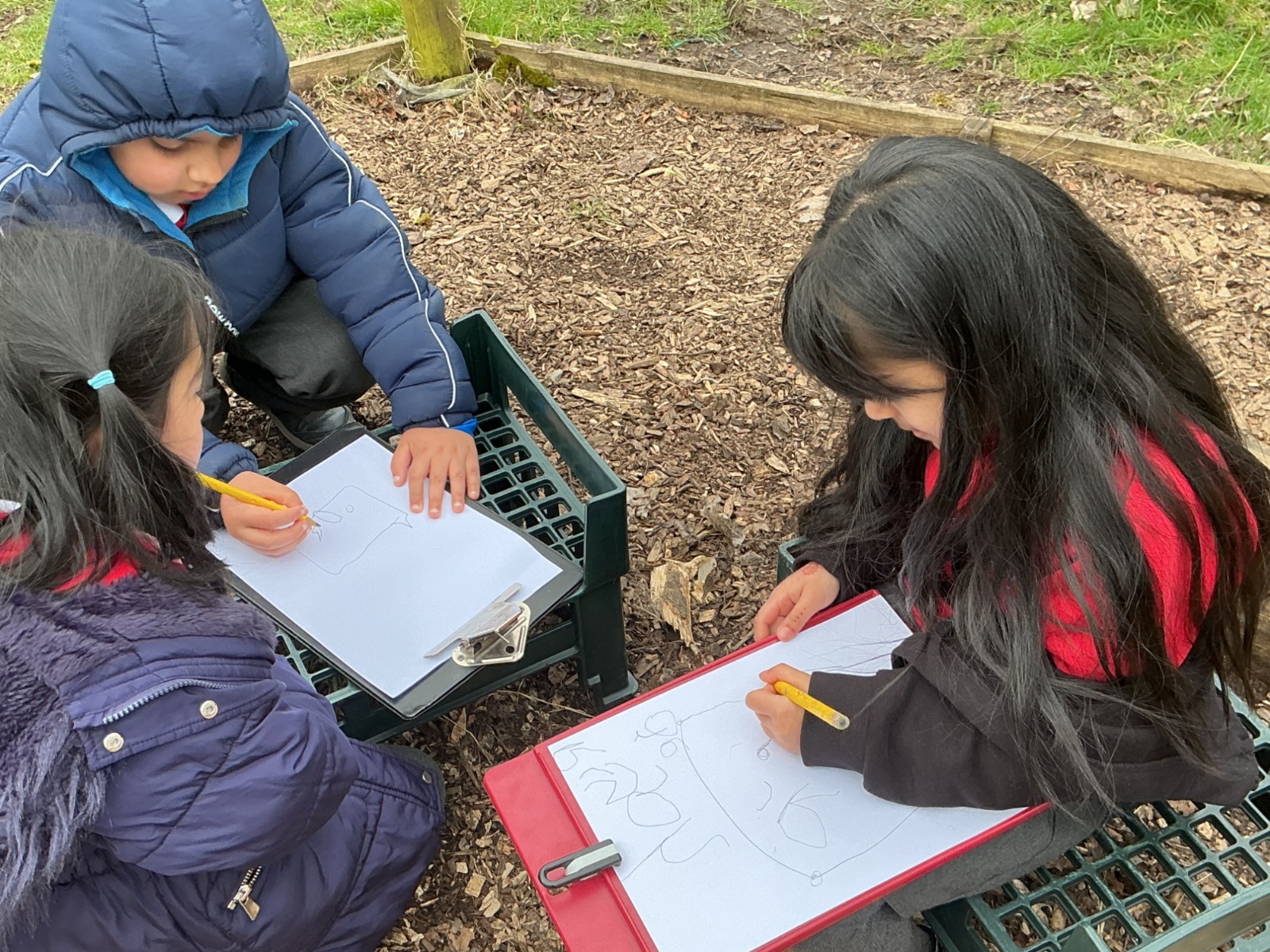 To help us understand this better, we worked together as a team to design and build our very own class minibeast habitat. Before we started building, we carefully drew pictures of different minibeast habitats and thought about what they should look like. This helped us plan how to make a safe and suitable home for our tiny visitors.