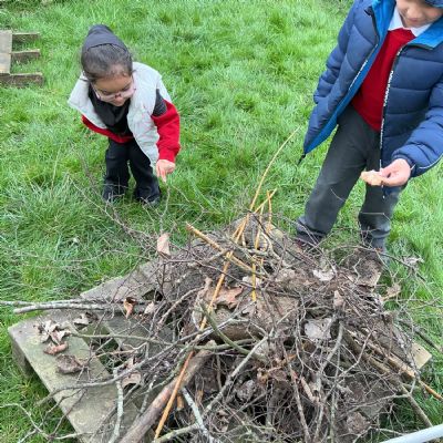 We then used a collection of natural resources to create our habitat, including sticks, logs, grass, and leaves. Everyone contributed, showing great teamwork and creativity as we built a space that minibeasts might enjoy.