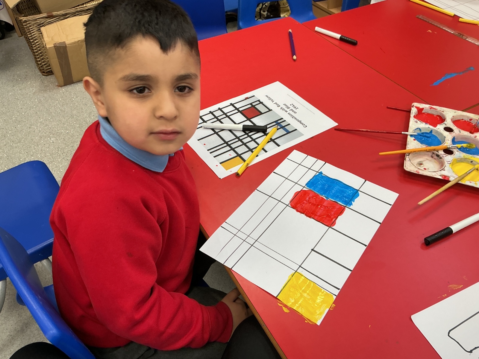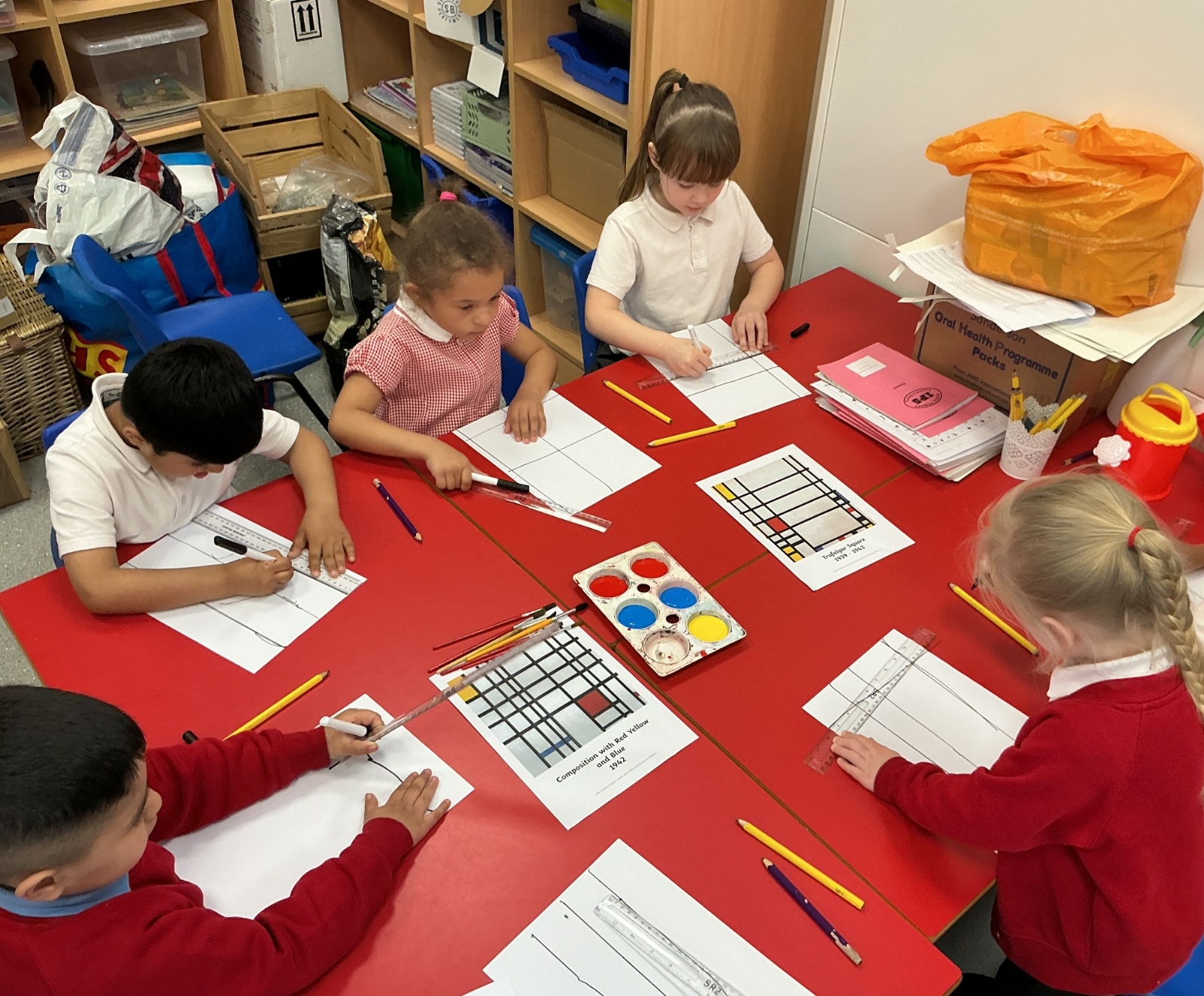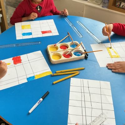 Through discussion and observation, the children shared their ideas about Mondrian’s artwork and began to understand the techniques he used to create his famous pieces.