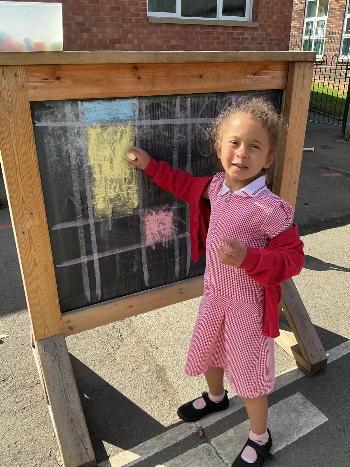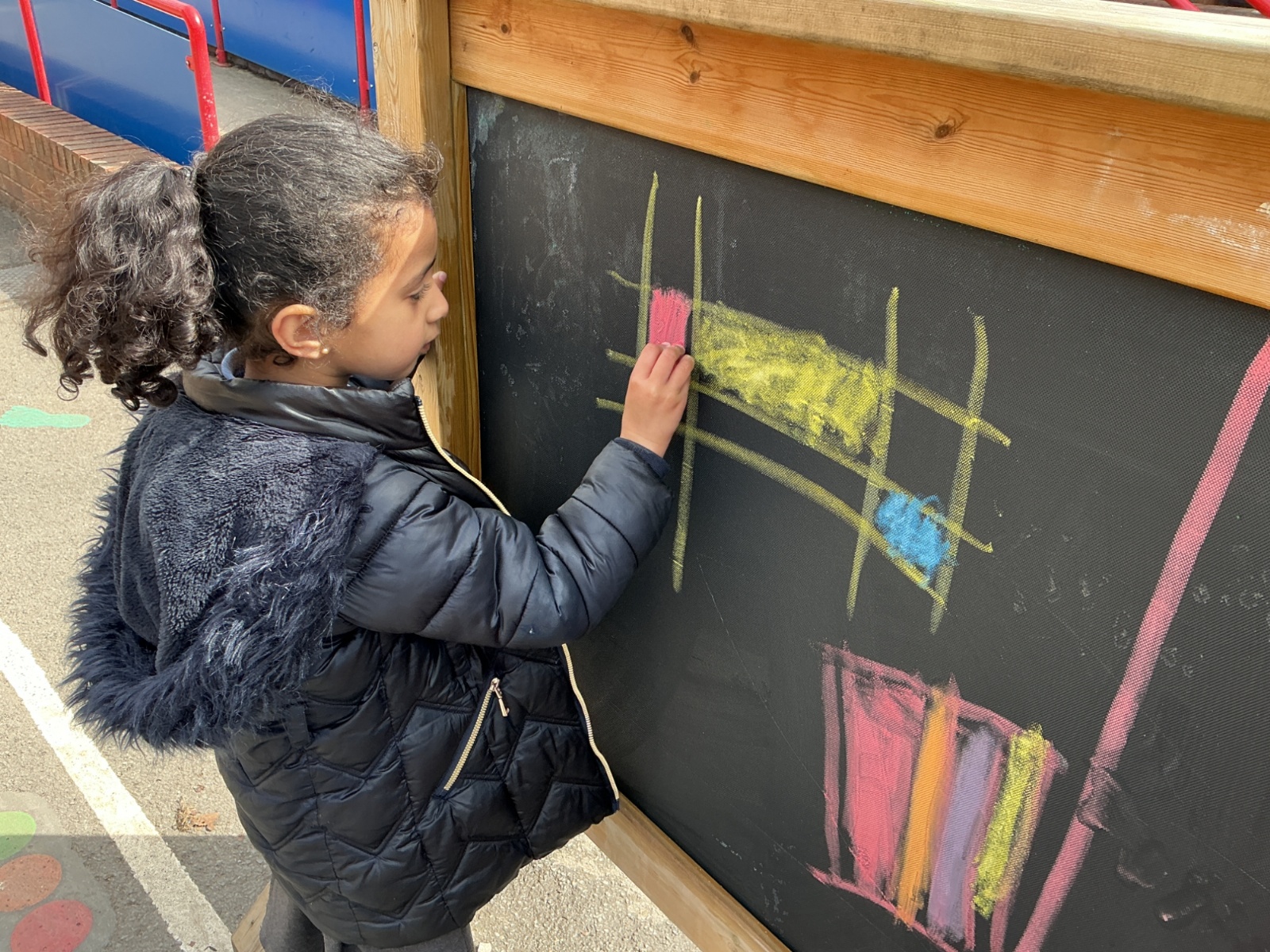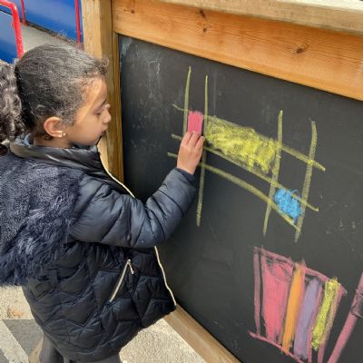 Inspired by his work, the children then created their own artwork in the style of Mondrian. They experimented with a variety of media, including pastels, paint, chalk, tissue paper and wax crayons. This allowed them to explore texture, colour and line in creative and engaging ways.