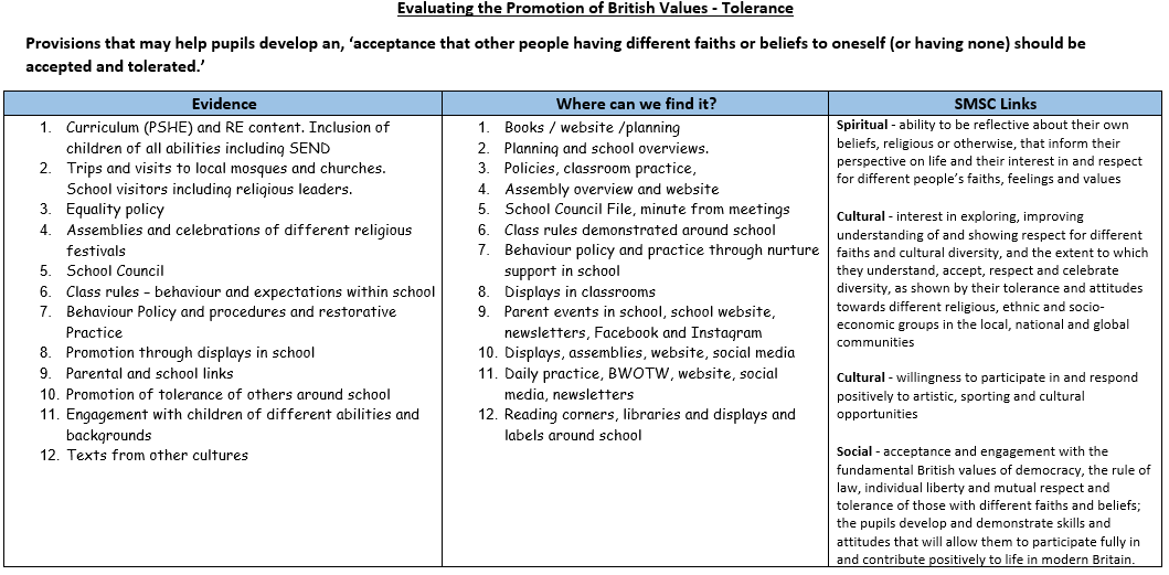 Part of our school ethos and behaviour policy revolves around our Mission Statement, which states that we expect everyone within our school to feel safe, valued, be treated fairly with dignity and respect in order to achieve their full potential. Pupils are expected to show mutual respect towards everything and everyone, regardless of individual differences, at all times. All children, adults and visitors are expected to behave respectfully and we will challenge anybody who displays prejudicial or discriminatory behaviour. Pupils take part in assemblies and class discussions related to what this means and how it is shown.