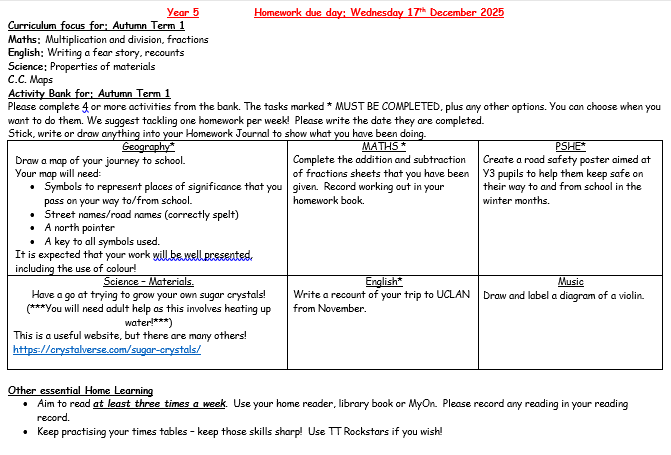 For homework, please see the grid below (or click on the homework link on the right.!) You can also find lots of activities to explore on Purple Mash. If you wish to send us any homework via email, please use the following email button: